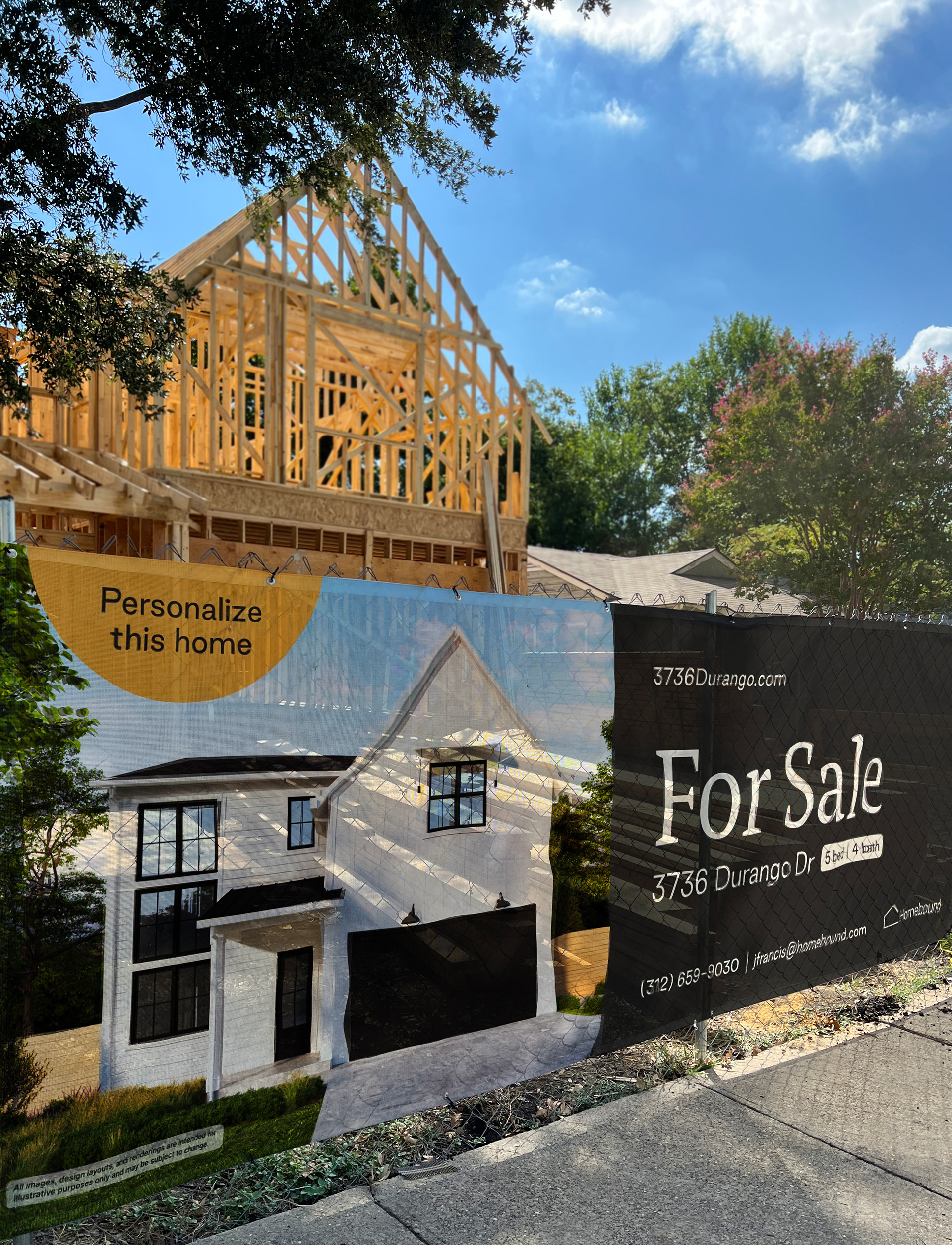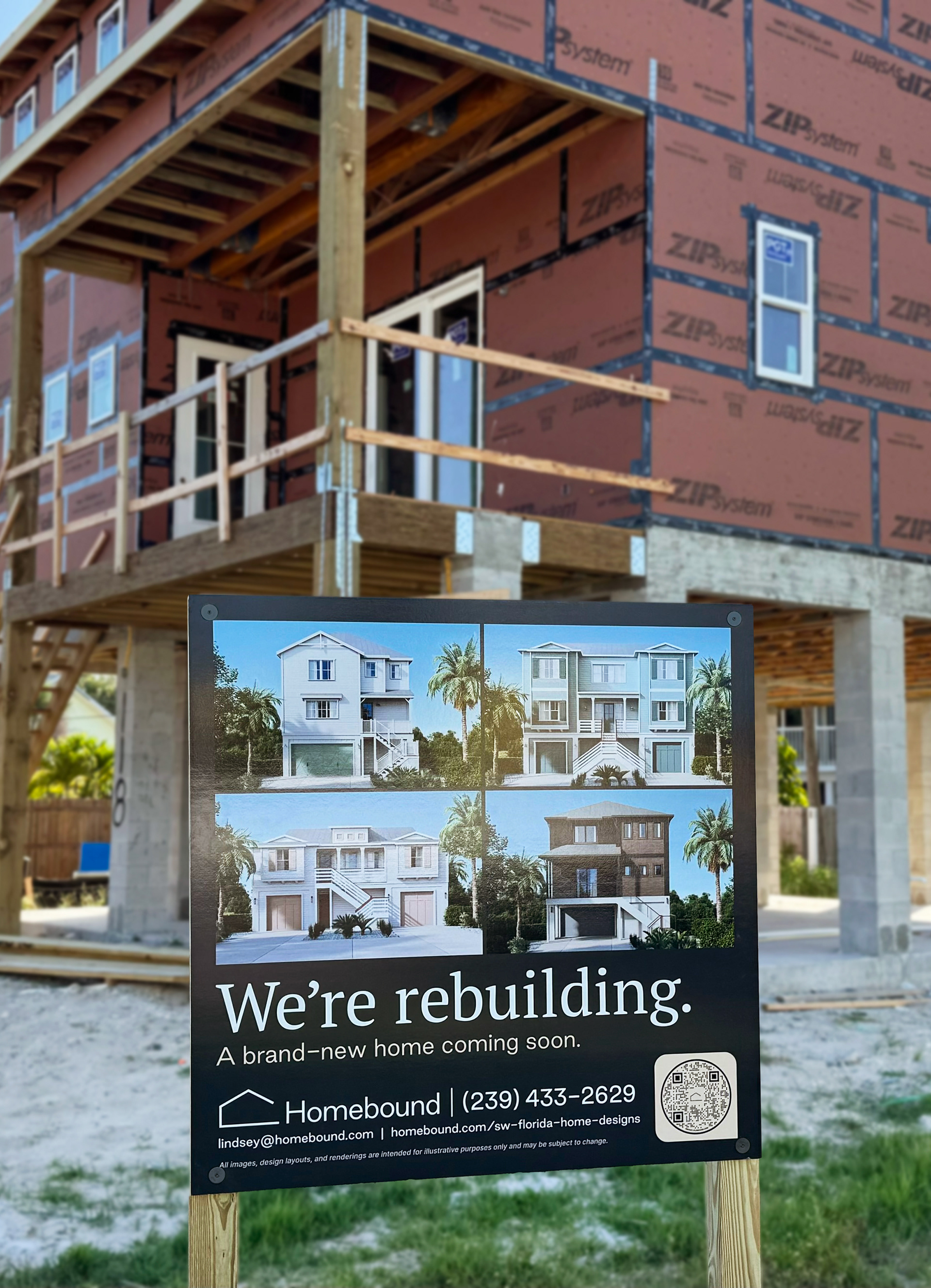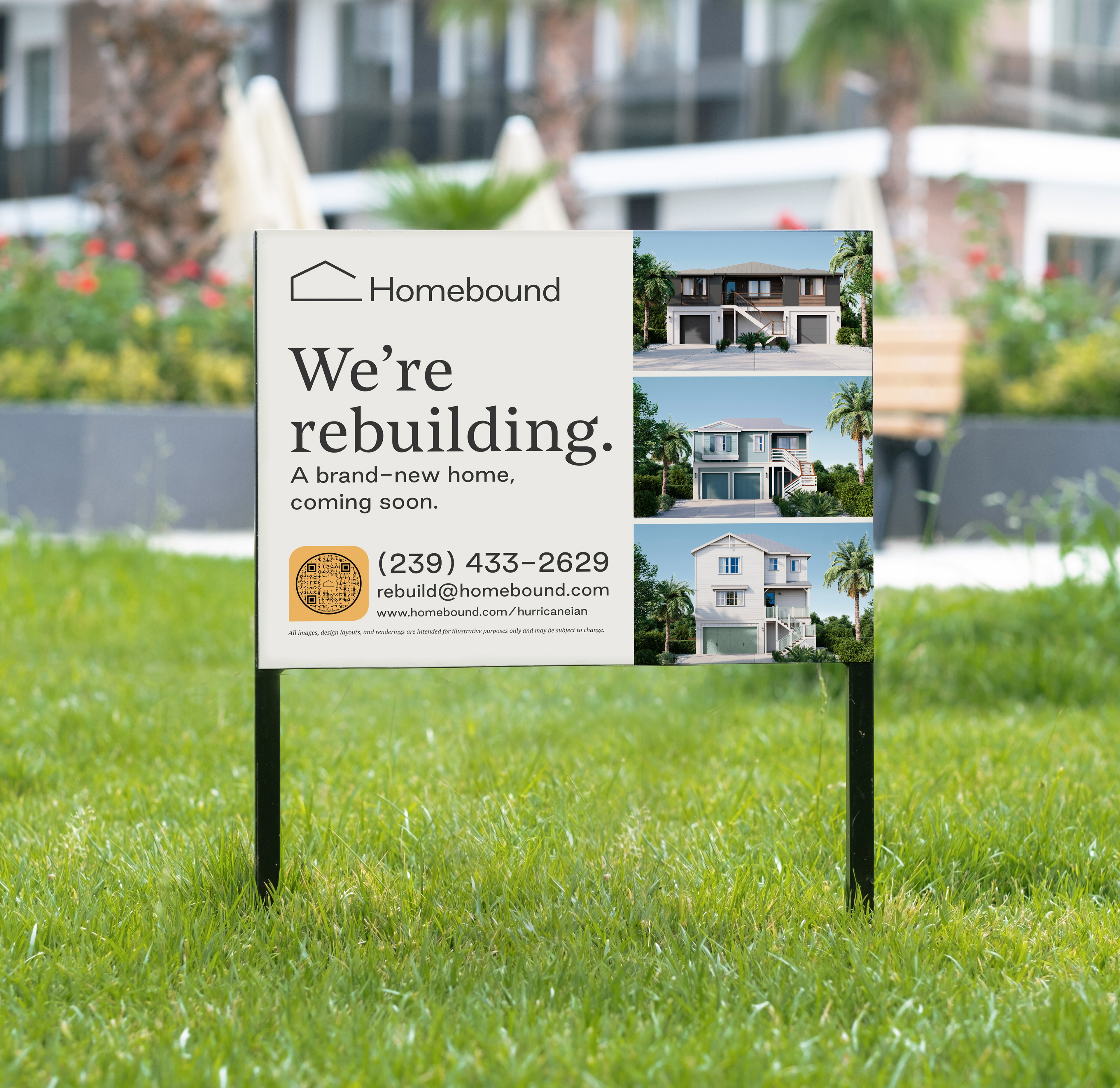 Imagining the lifecycle as a book or story, the first sign must act as an introduction to Homebound and set the stage. Our Lot Specific sign, which includes a rendering of the soon-to-be home, is the very heart of the book, filling in the gaps and sparking intrigue. The last chapter brings it all to a close — house pun :)