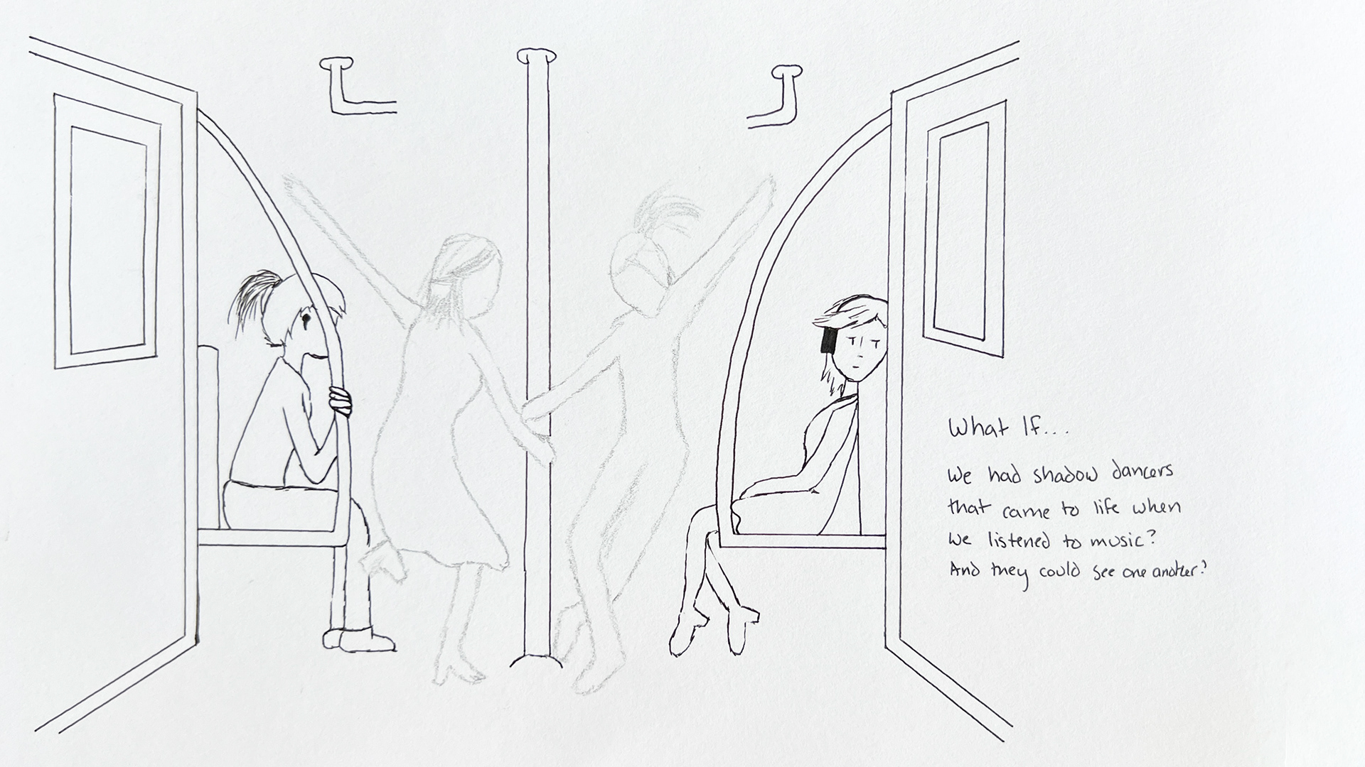 "What if...We had shadow dancers that came to life when we listened to music? And they could see each other? (Chosen direction)