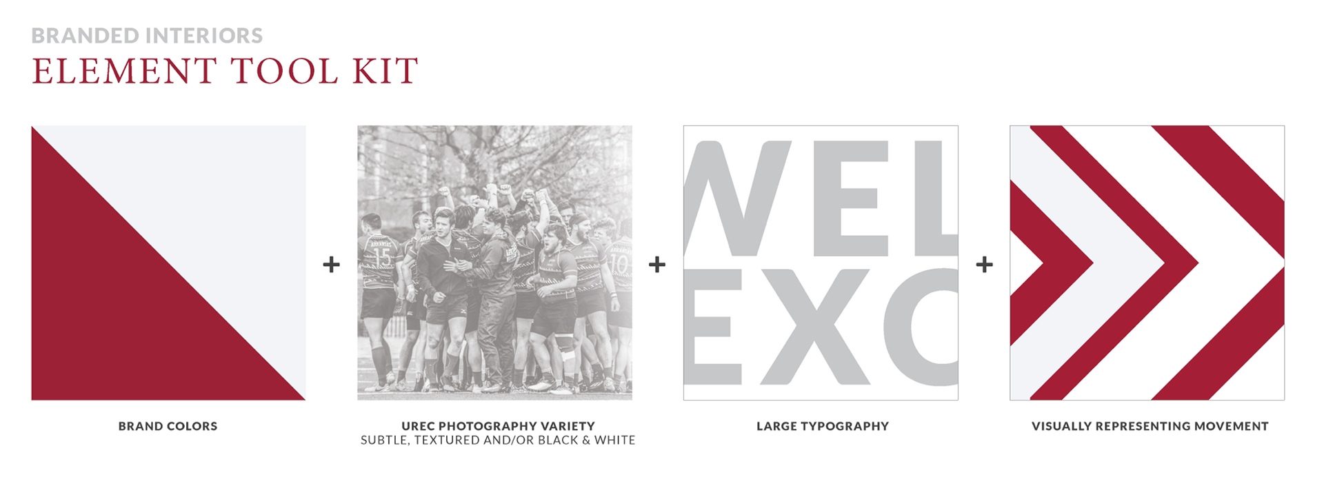 A blank slate, The University of Arkansas Rec Center had just been newly renovated, creating these perfect, large, blank walls, begging for graphics to be placed upon them. Although the project was halted before fabrication, it was a great experience being able to collaborate with the architects (Hufft, based out of Kansas City) and work alongside the Rec Center team to develop graphics that would motivate and enhance the tone of the space for the student population at UArk.